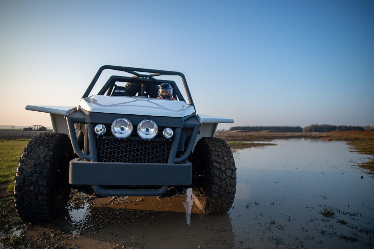 A dynamic vehicle designed for off-road desert adventures! With its lightweight and open construction, powered by a proportionally strong engine, it features bucket seats and four-point harnesses.